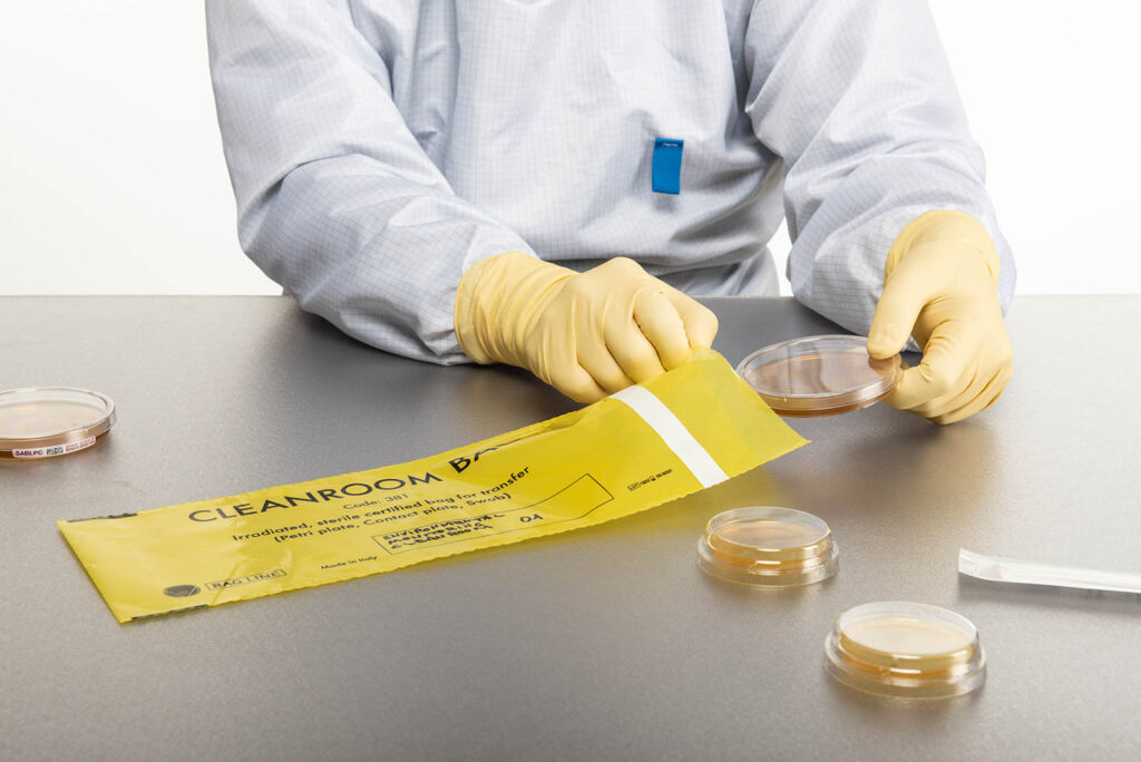 These sterile bags are ideal to contain and transport safely Petri or Contact plates, swabs or other objects outside of the cleanroom.